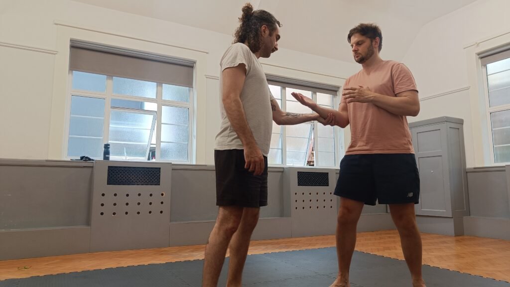 Wing Chun is a scientific, practical self-defence system. Everything we do is pressure-tested with realism in mind – no high kicks or flashy techniques. We train for realistic scenarios in a safe environment, and like to test how we can apply Wing Chun principles in any situation, such as when fighting from the ground.